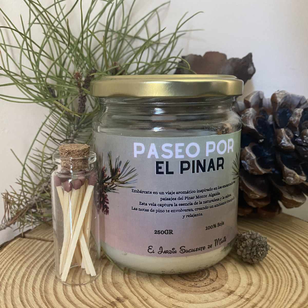 Imagina un gran pinar o monte, con sus altos pinos verdes. Cierra los ojos y respira profundamente, inhalando el frescor puro, el aire limpio y la fragancia vibrante de la vegetación. Este es el viaje sensorial que te ofrece nuestra vela "Paseo por el Pinar".