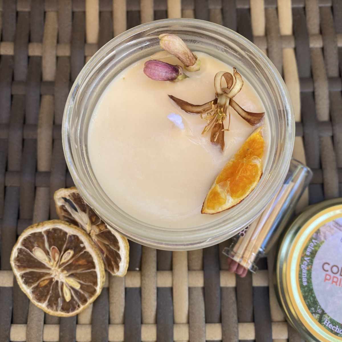 Todas nuestras velas están hechas con cera de soja natural, en este caso lleva mecha de madera.