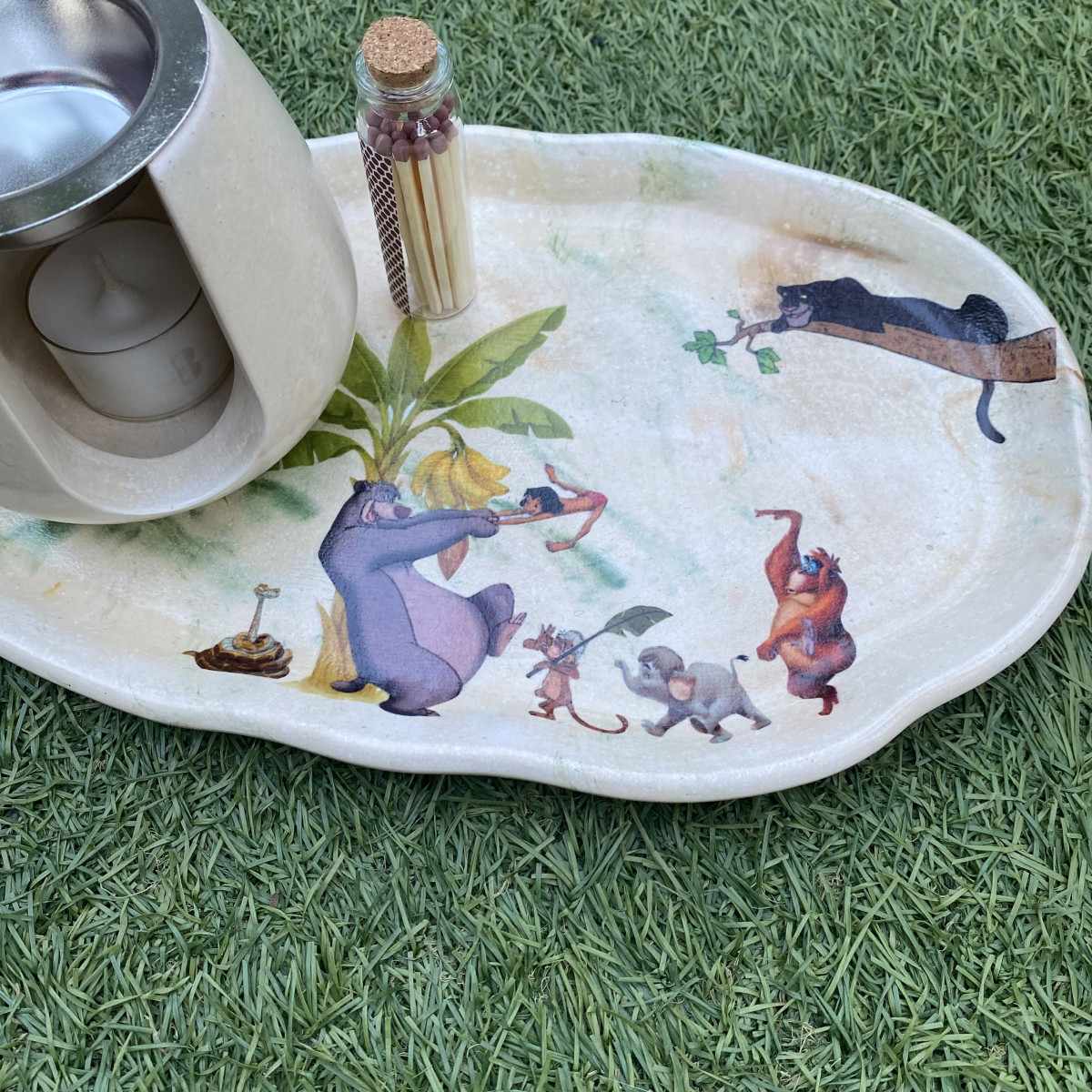 Este conjunto de bandeja decorativa de cemento con quemador a juego está inspirado en la esencia más pura de El Libro de la Selva: la libertad, la naturaleza y la alegría de disfrutar de lo esencial.
