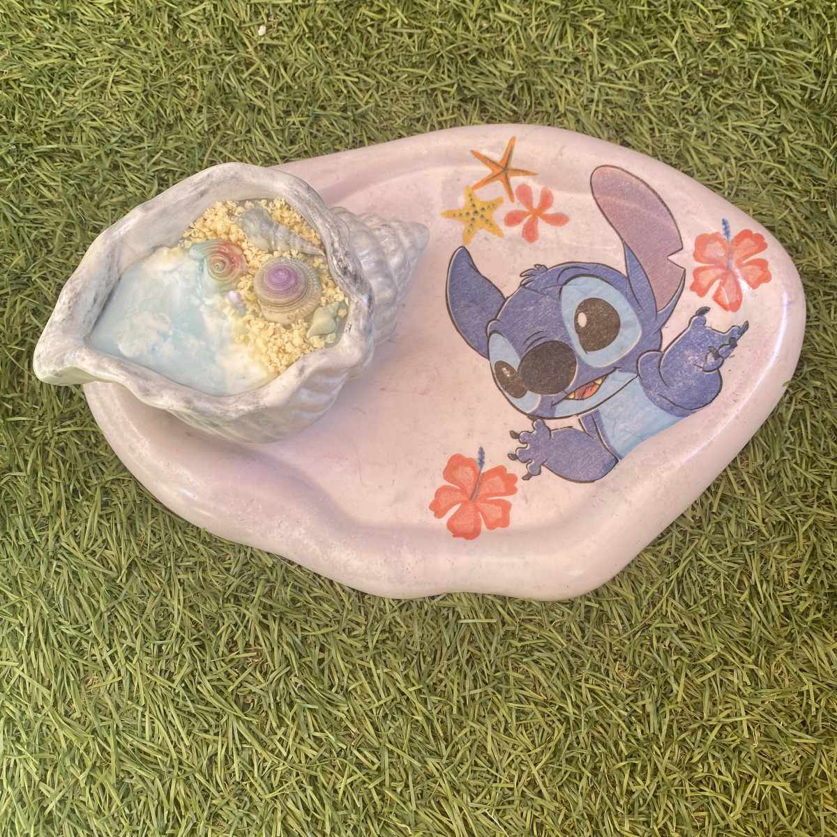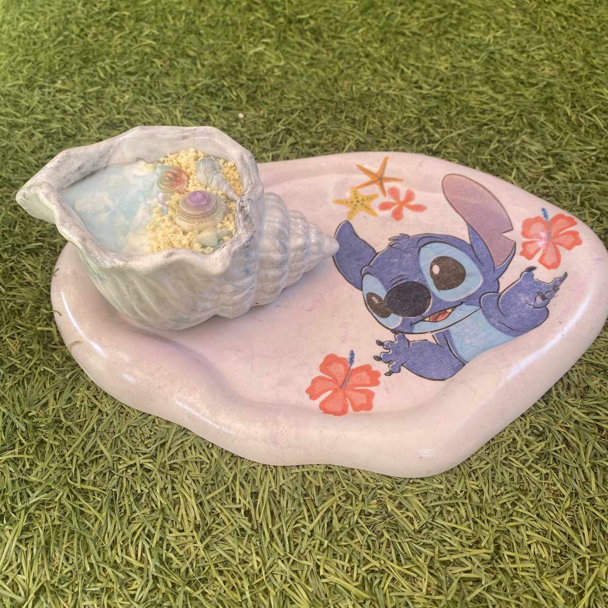 Bandeja mediana Ohana, hecha a mano en cemento en tono lila clarito (23 x 15 cm), con un diseño de Stitch que aporta ternura y un aire divertido a cualquier rincón. 🌺💜