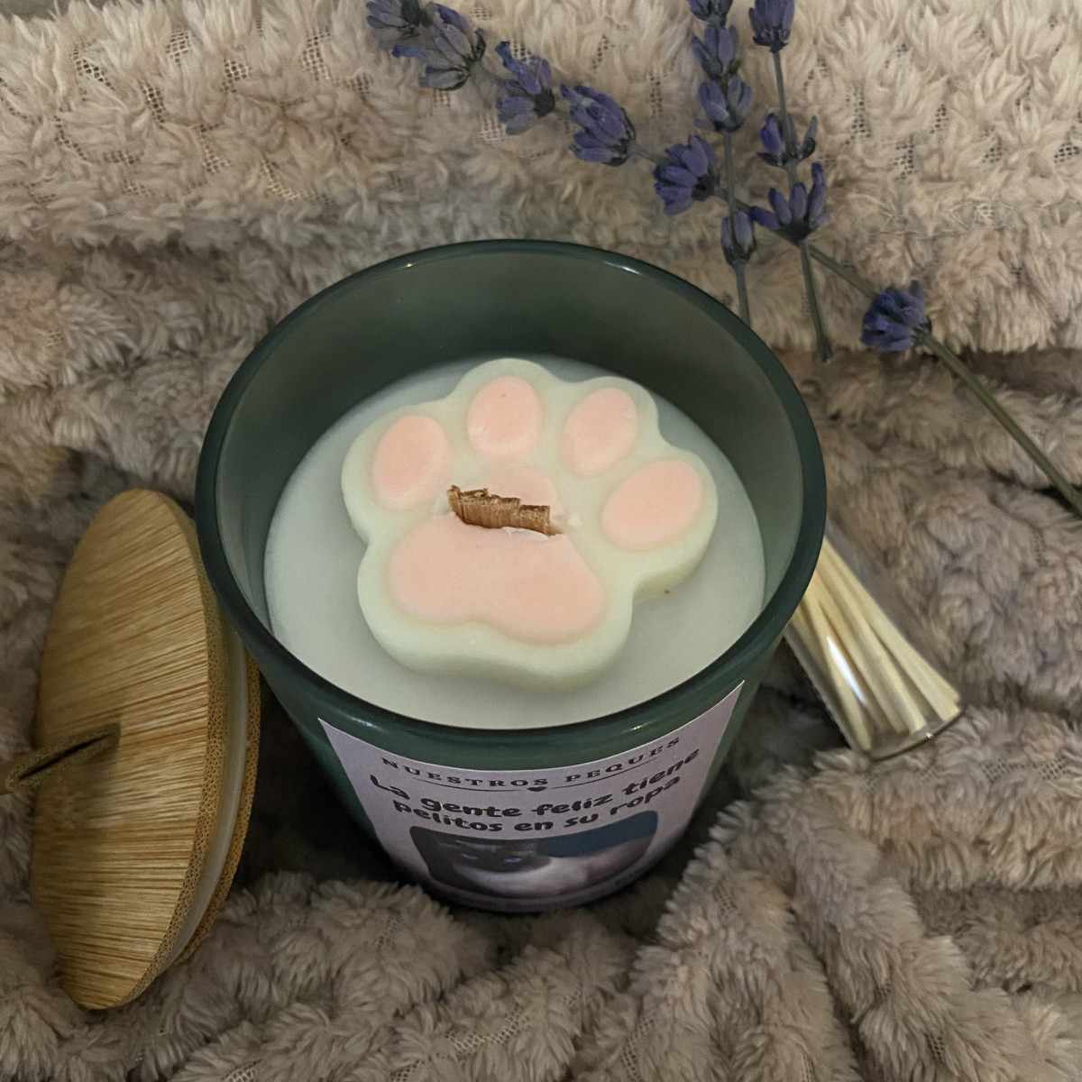 Celebra el amor por tus mascotas con la vela personalizada de la colección "Nuestros Peques", diseñada para representar a esos fieles compañeros que forman parte de tu familia.