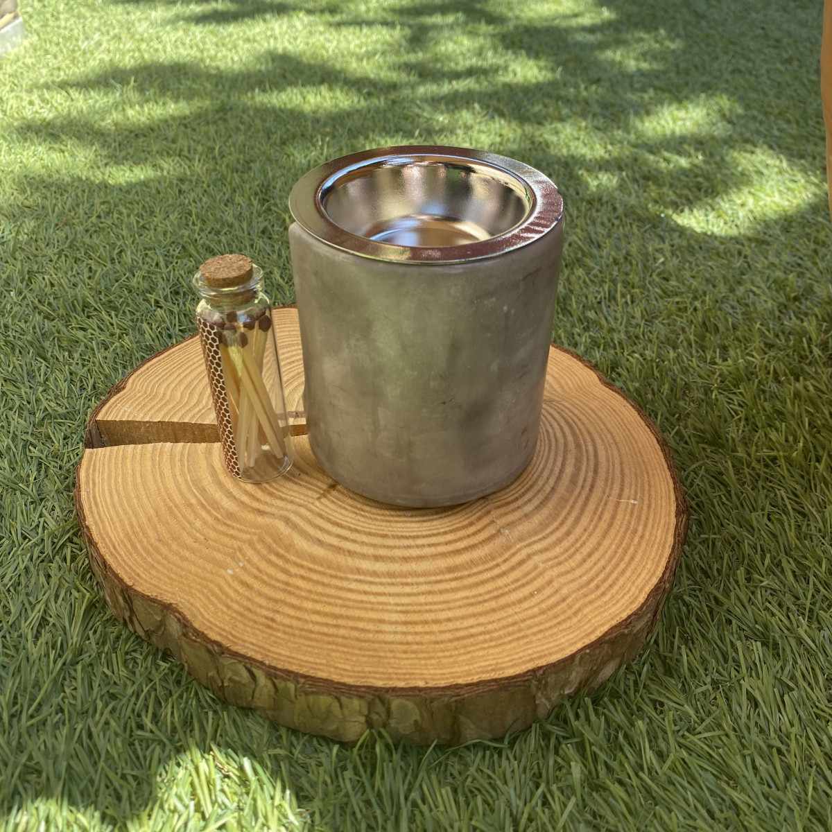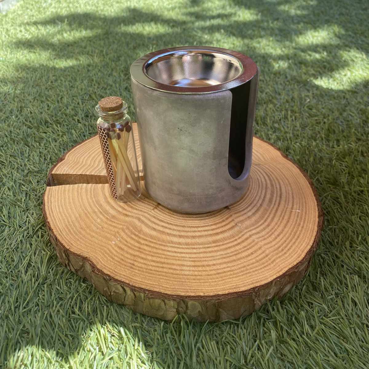 Quemador de Cemento Artesanal con Plato de Metal