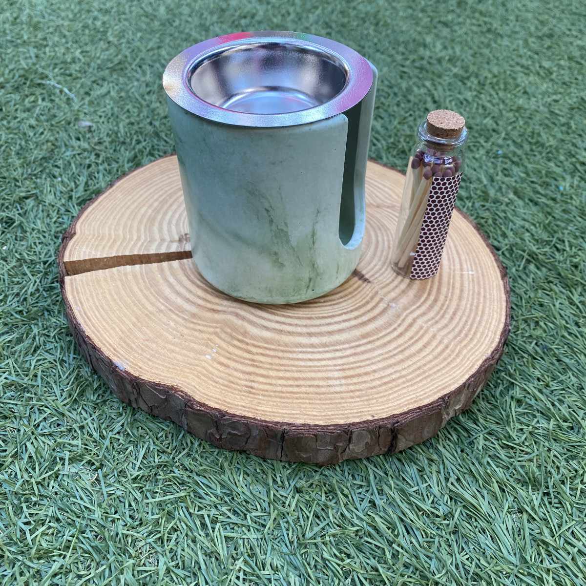 Quemador de Cemento Artesanal con Plato de Metal