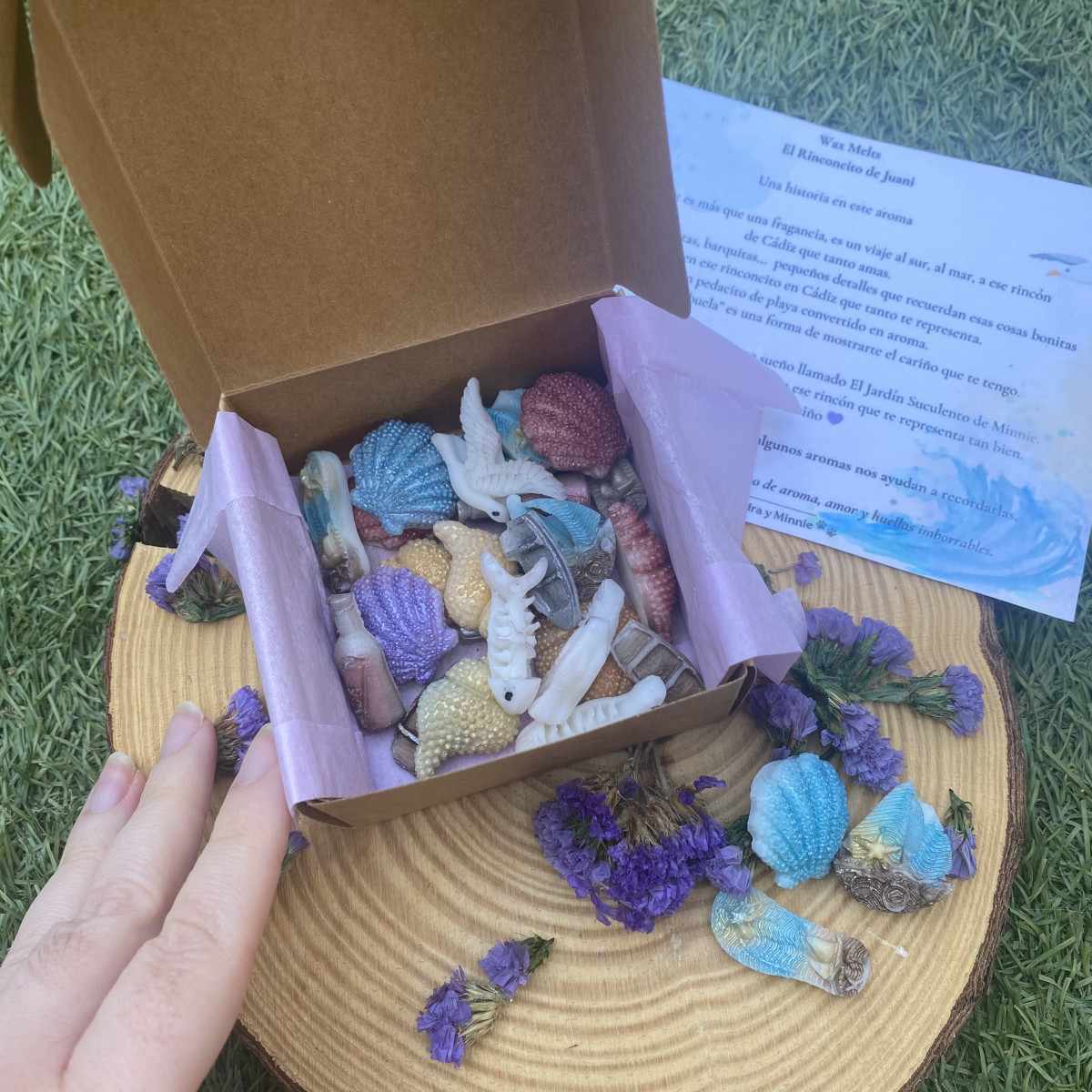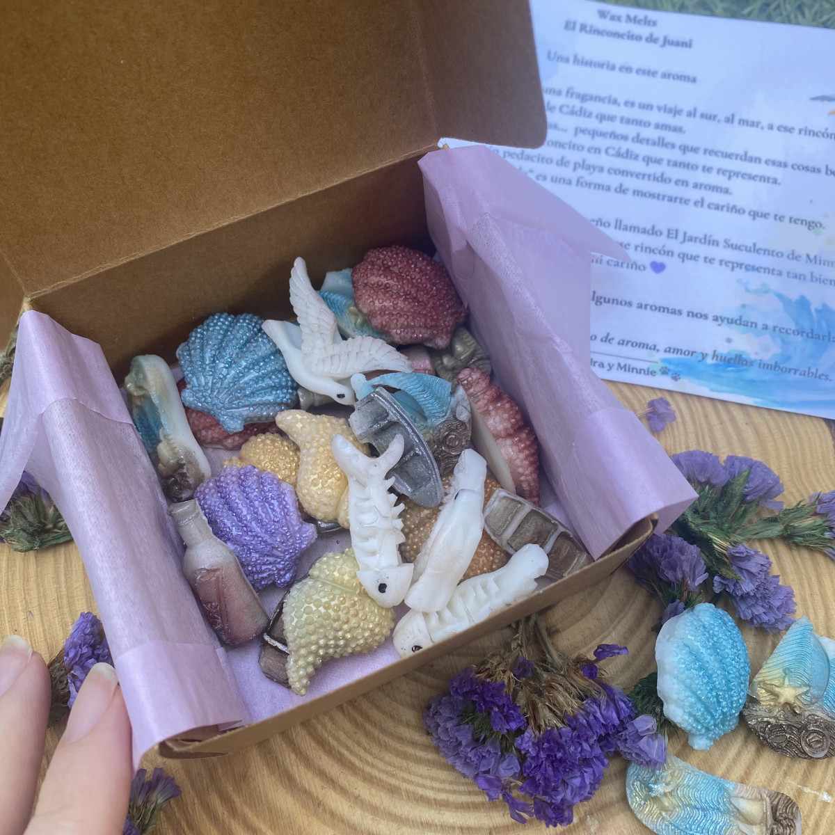 Dedicado con cariño a Juani, una clienta que me ha acompañado desde el primer momento y que lleva a Cádiz en el corazón. Este wax está inspirado en ese rincón especial que tanto le gusta: la brisa marina, los paseos junto a la orilla, el sonido de las olas y la calma del atardecer.