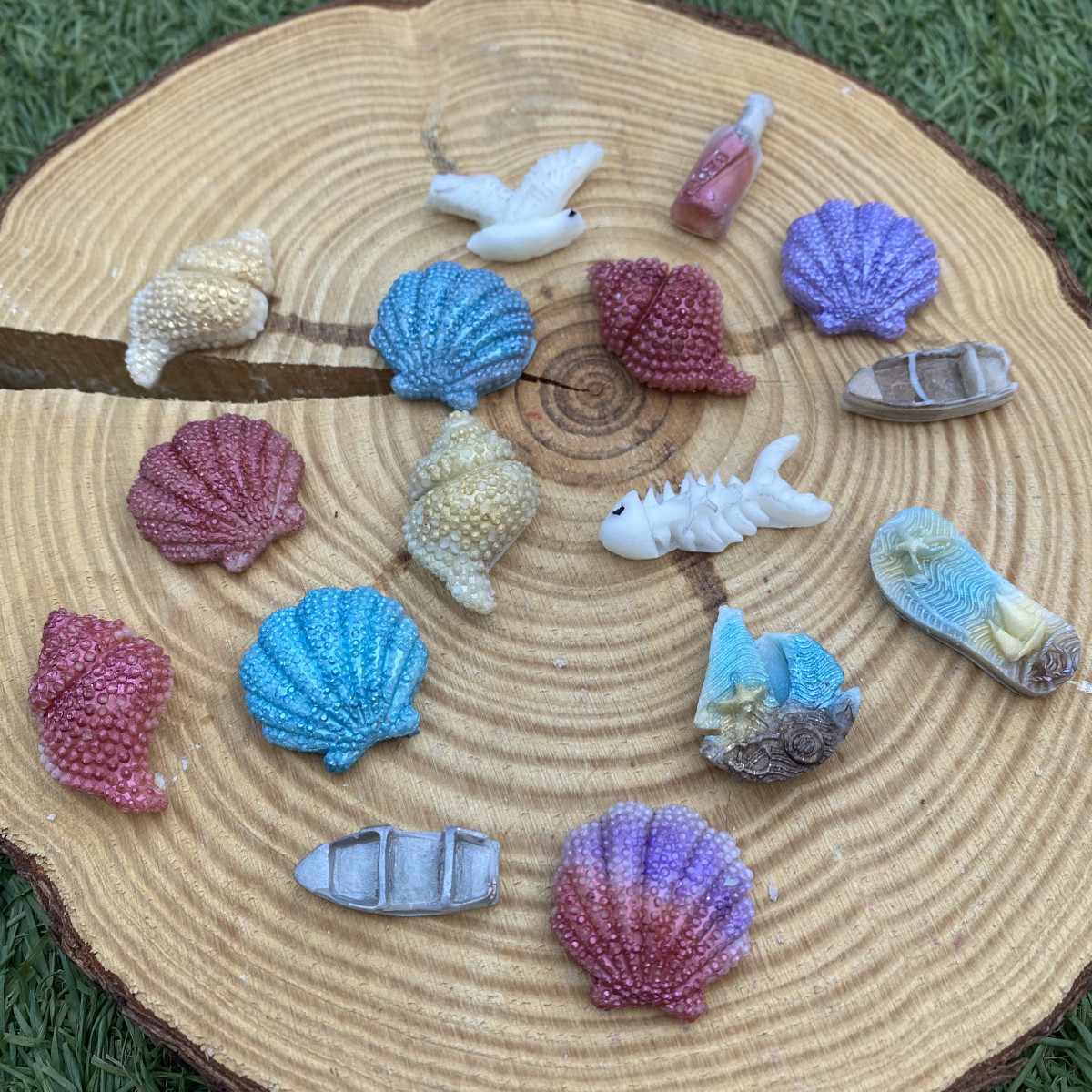 Sus figuras conchitas, chanclas, barquitas y detalles marinos— recrean esa estampa costera, mientras que su fragancia combina la frescura salada del Sea Breeze con el toque floral y envolvente de la Peonía Encantada.