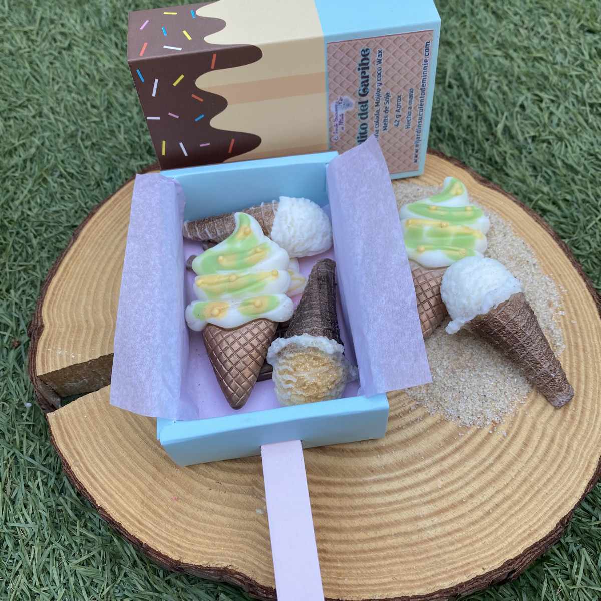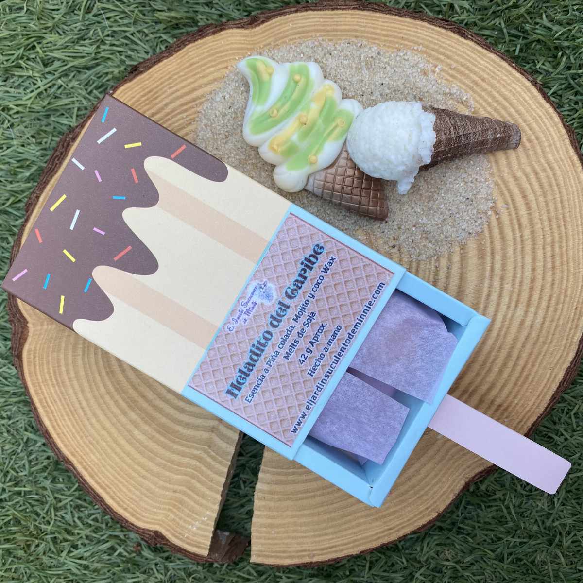 Presentado en una cajita en forma de helado con tonos amarillo, marrón y celeste, este wax huele a vacaciones o una tarde soleada junto al mar con sus aromas súper fresquitos: piña colada, mojito y coco 🥥🍍